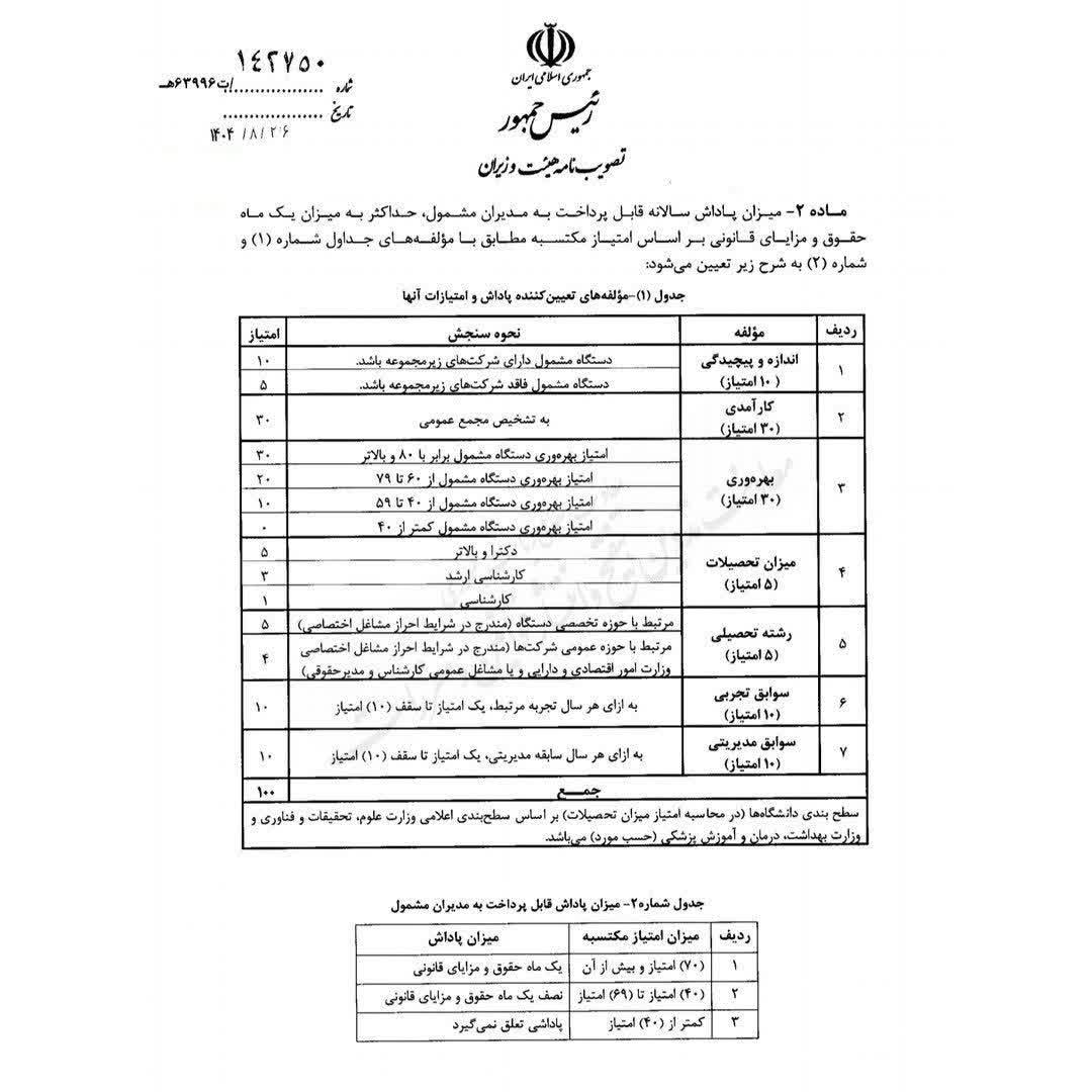 پاداش مجاز مدیران دولتی تغییر کرد .