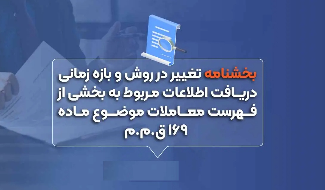 بخشنامه تغییر در روش و بازه زمانی دریافت اطلاعات مربوط به بخشی از فهرست معاملات موضوع ماده ۱۶۹ قانون مالیات های مستقیم