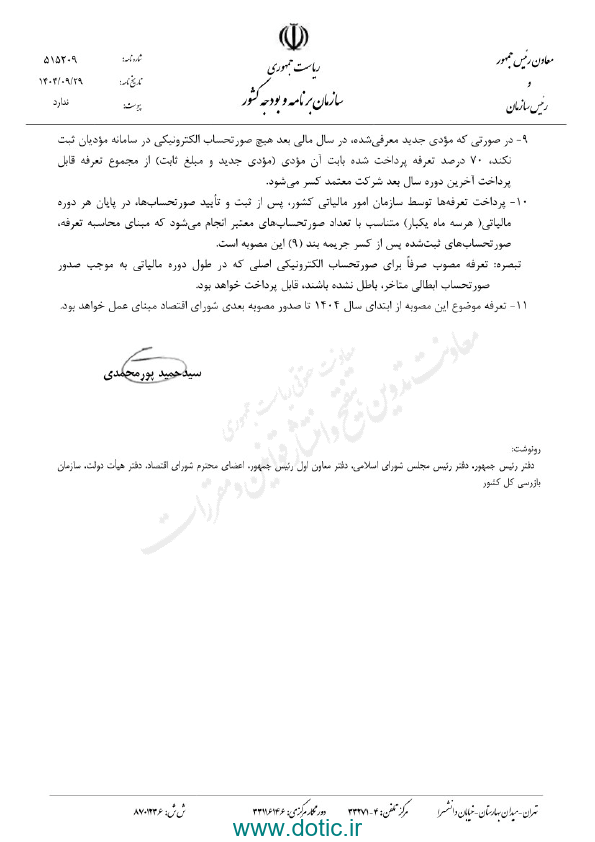 11-تعرفه موضوع این مصوبه از ابتدای سال 1404 تا صدور مصوبه بعدی شورای اقتصاد مبنای عمل خواهد بود.