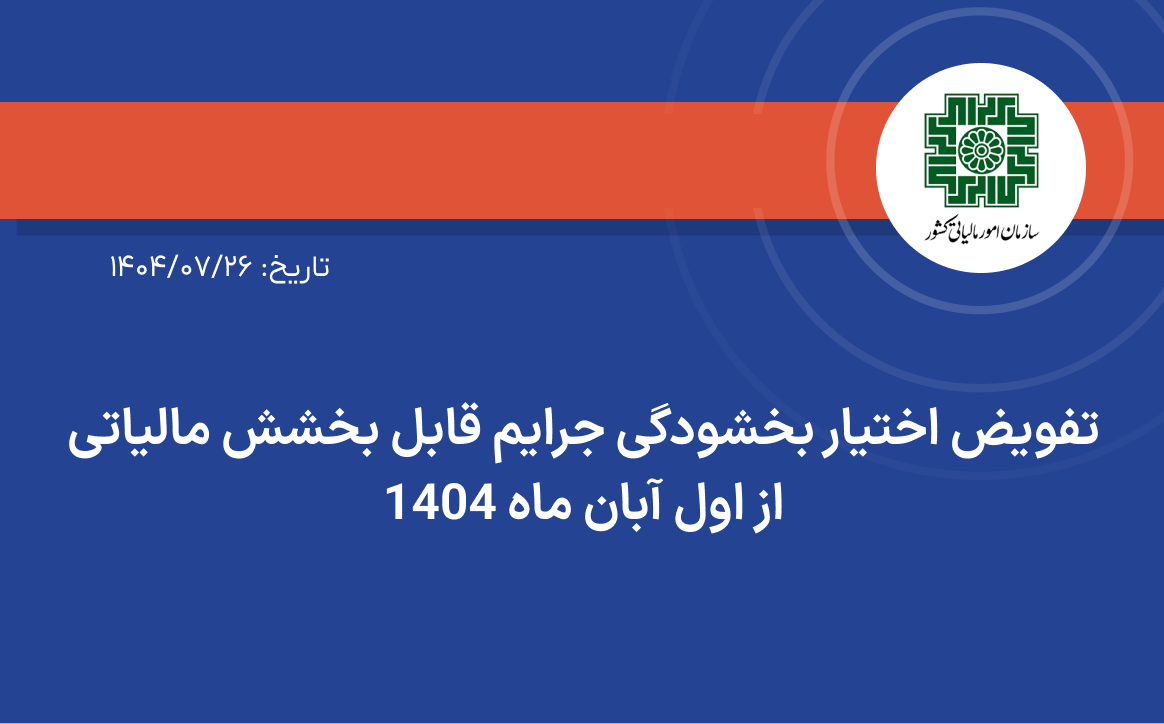 ابلاغ دستورالعمل جدید سازمان امور مالیاتی در خصوص بخشودگی جرائم مالیاتی 1404 موضوع بخشنامه ۲۰۰/۱۴۰۴/۵۰۴ ـ تاریخ ۱۴۰۴/۰۷/۲۱ برای اجرا : از ۱۴۰۴/۰۸/۰۱